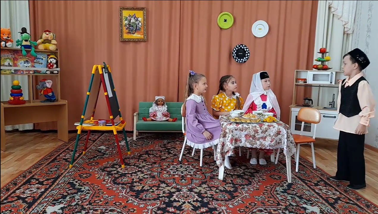 На празднике встречали детей куклы в национальных костюмах народов Поволжья, обогатили знания о различных предметах одежды, обуви, головных уборов. Учились различать татарский, русский, башкирский, чувашский народные костюмы, выделяя их характерные элементы. Отдохнули и порезвились дети в подвижных народных играх. Поиграли в русскую народную игру «Заря-заряница», татарскую народную игру «Зәңгәр чәчәк”, башкирскую народную игру “Юрта”, чувашскую игру “Птицы”. В ходе мероприятия дошкольники прочитали стихи о родном крае, просмотрели драматический спектакль «Тылсымлы сүз» по мотивам рассказа Валентины Осеевой «Волшебное слово» в исполнении ребят подготовительных групп.