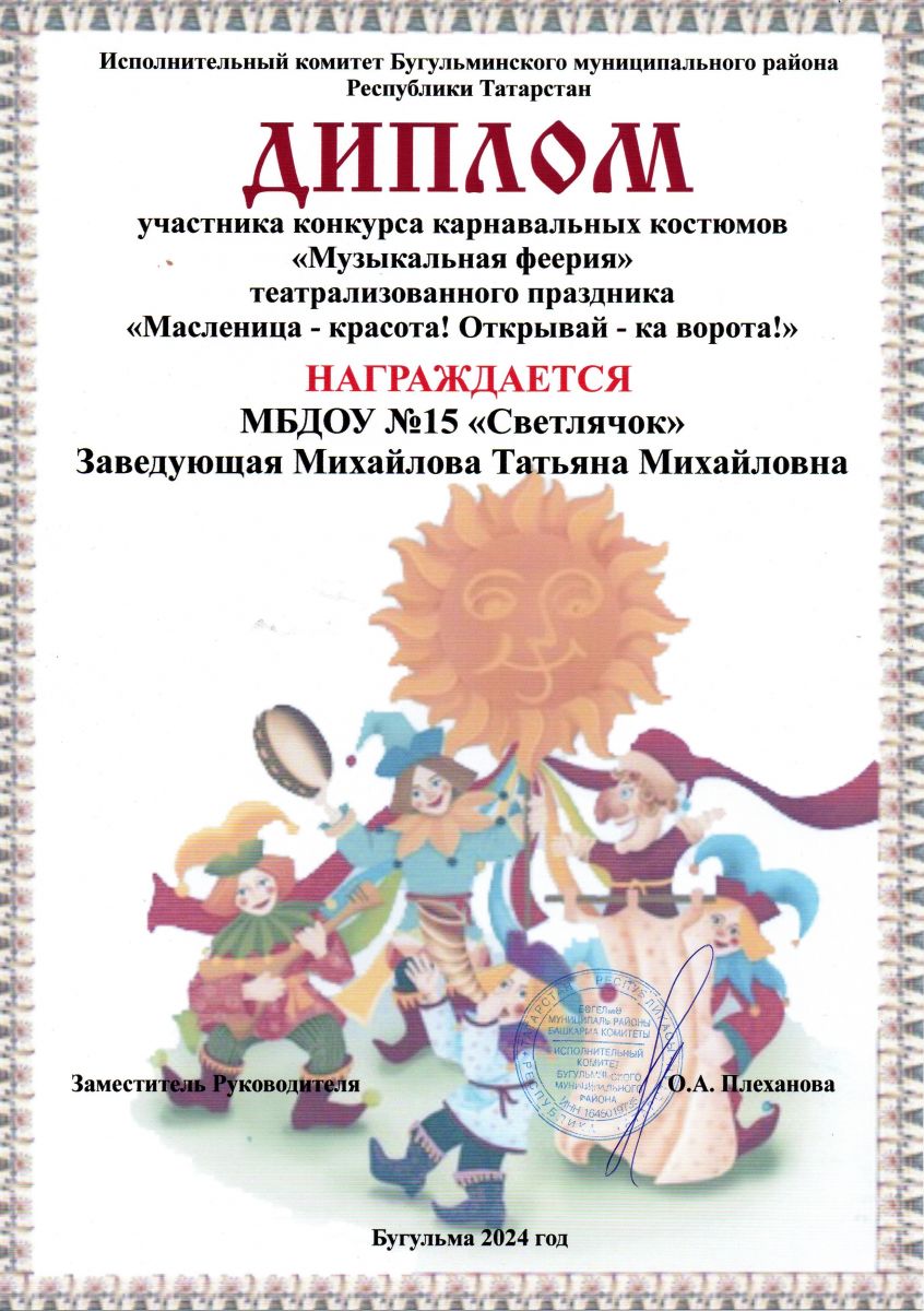Организатор конкурса — Исполнительный комитет Бугульминского муниципального района Республики Татарстан наградил дипломами участников необычного карнавала. Ведь сколько выдумки и фантазии, творчества и невероятного мастерства показали умелицы дошкольных образовательных организаций!