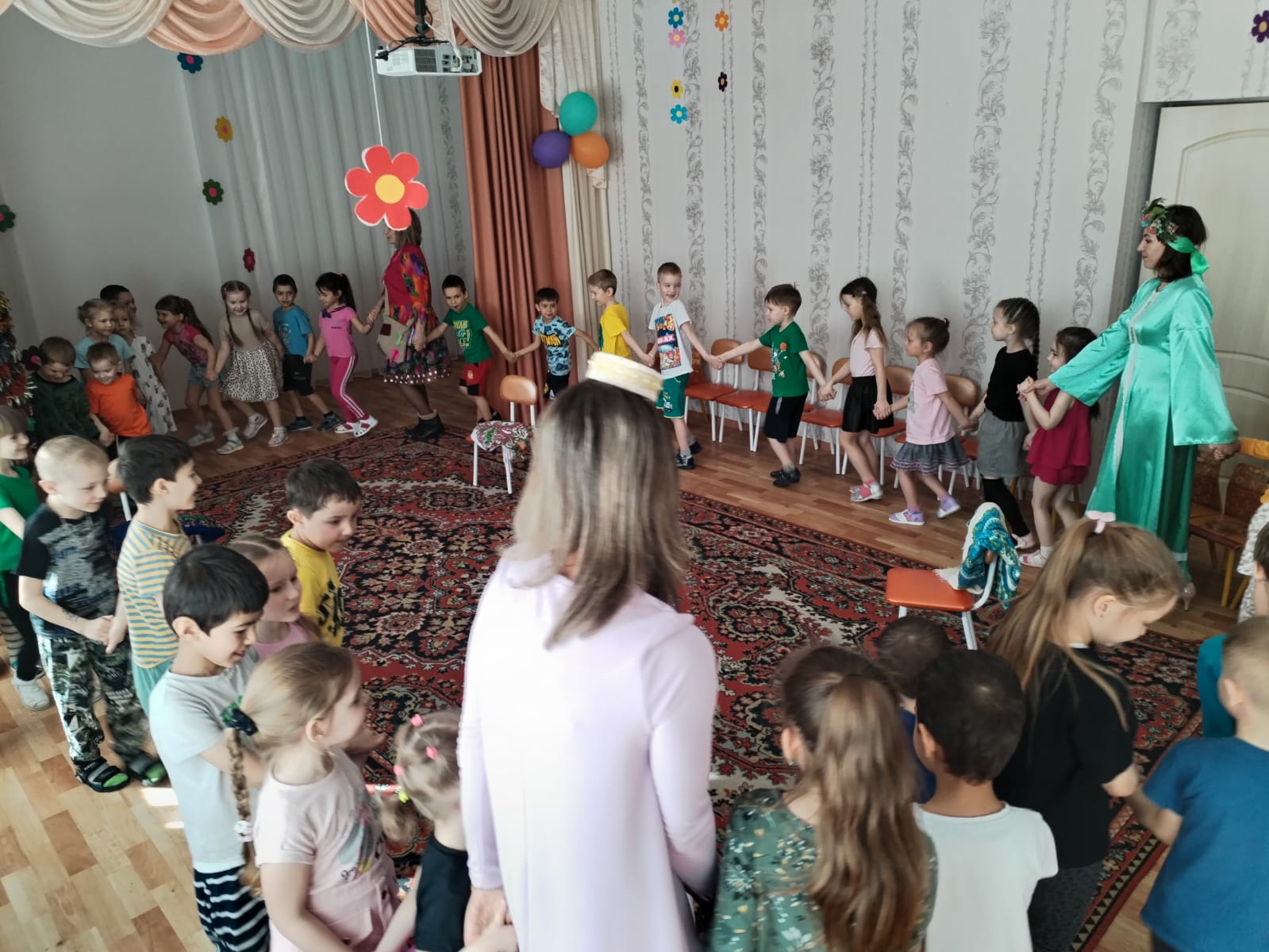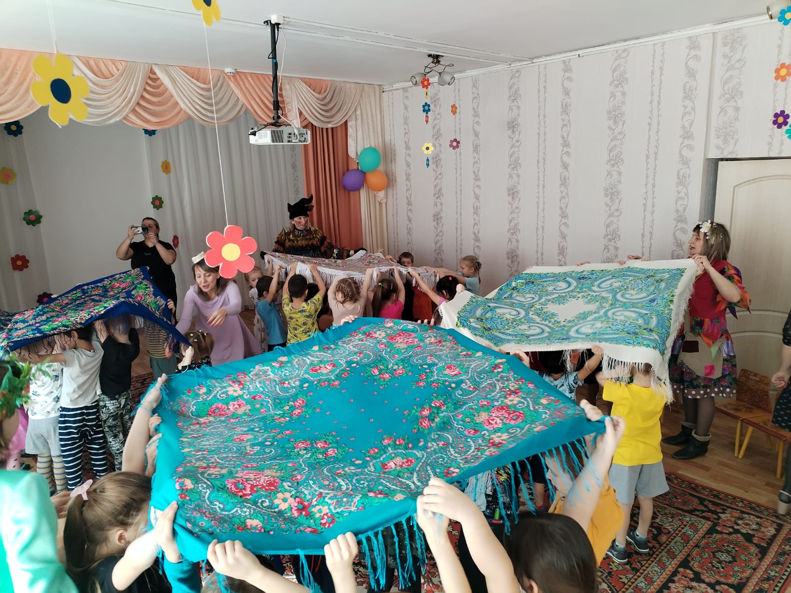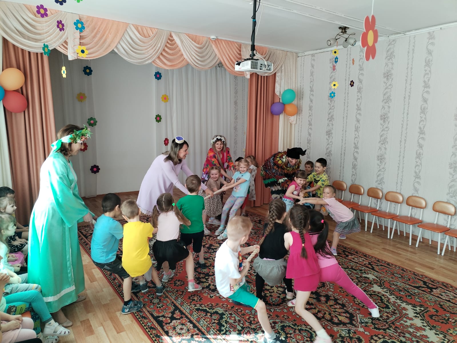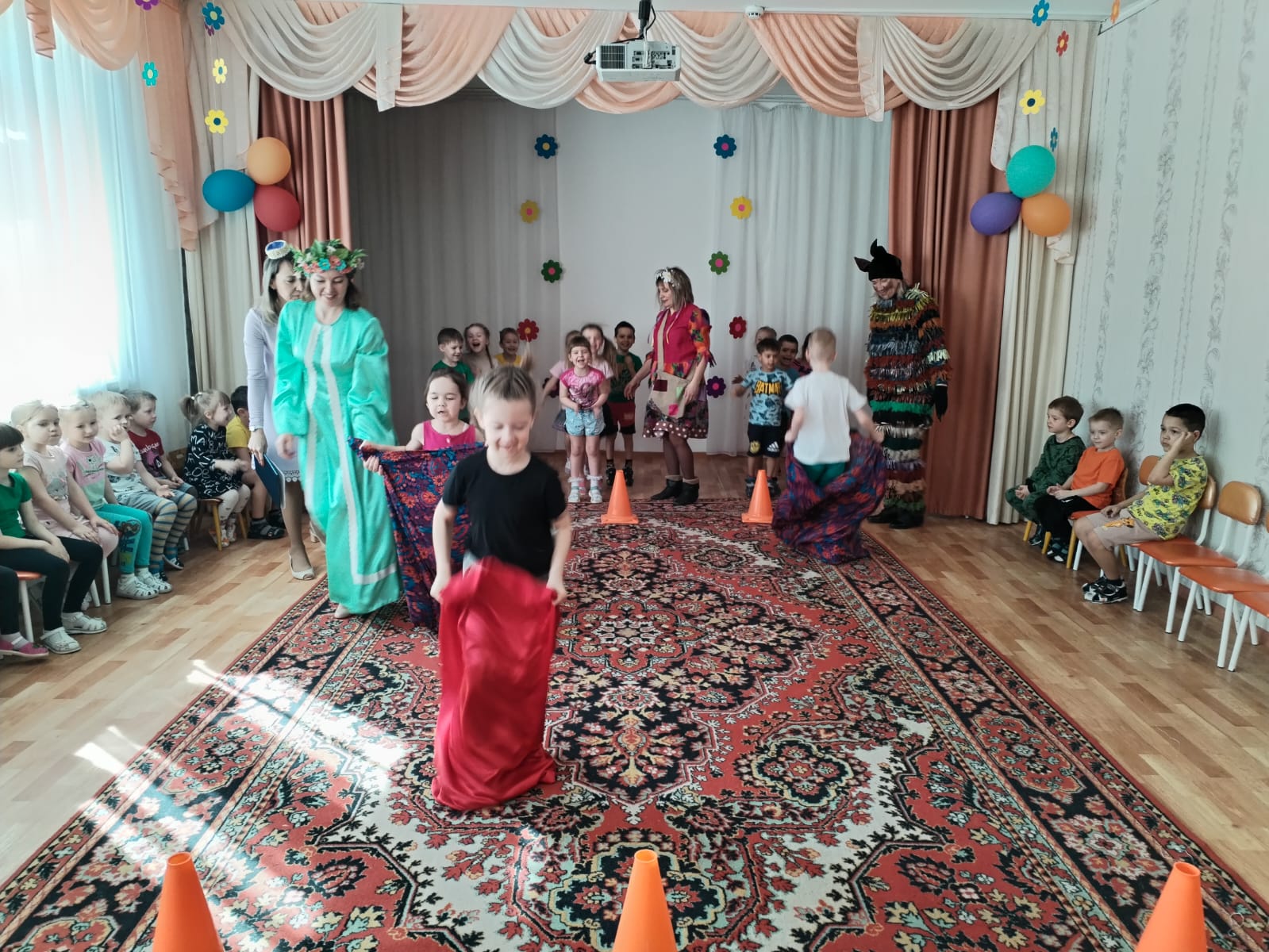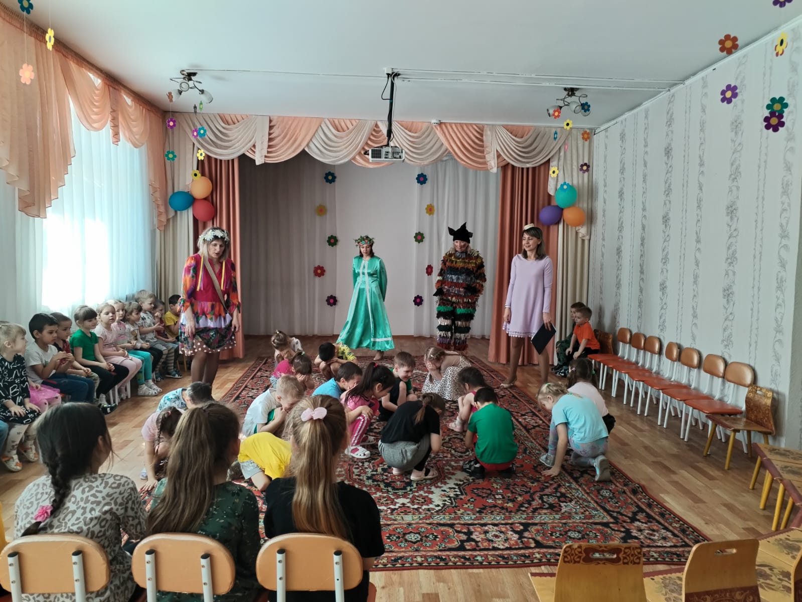 На празднике у ребят побывали Баба-яга и Шурале, которые соревновались в силе, ловкости и быстроте. Поиграли в татарскую народную игру «Тимербай» и башкирскую народную игру «Юрта». Дети с большим желанием участвовали во всех играх и эстафетах.