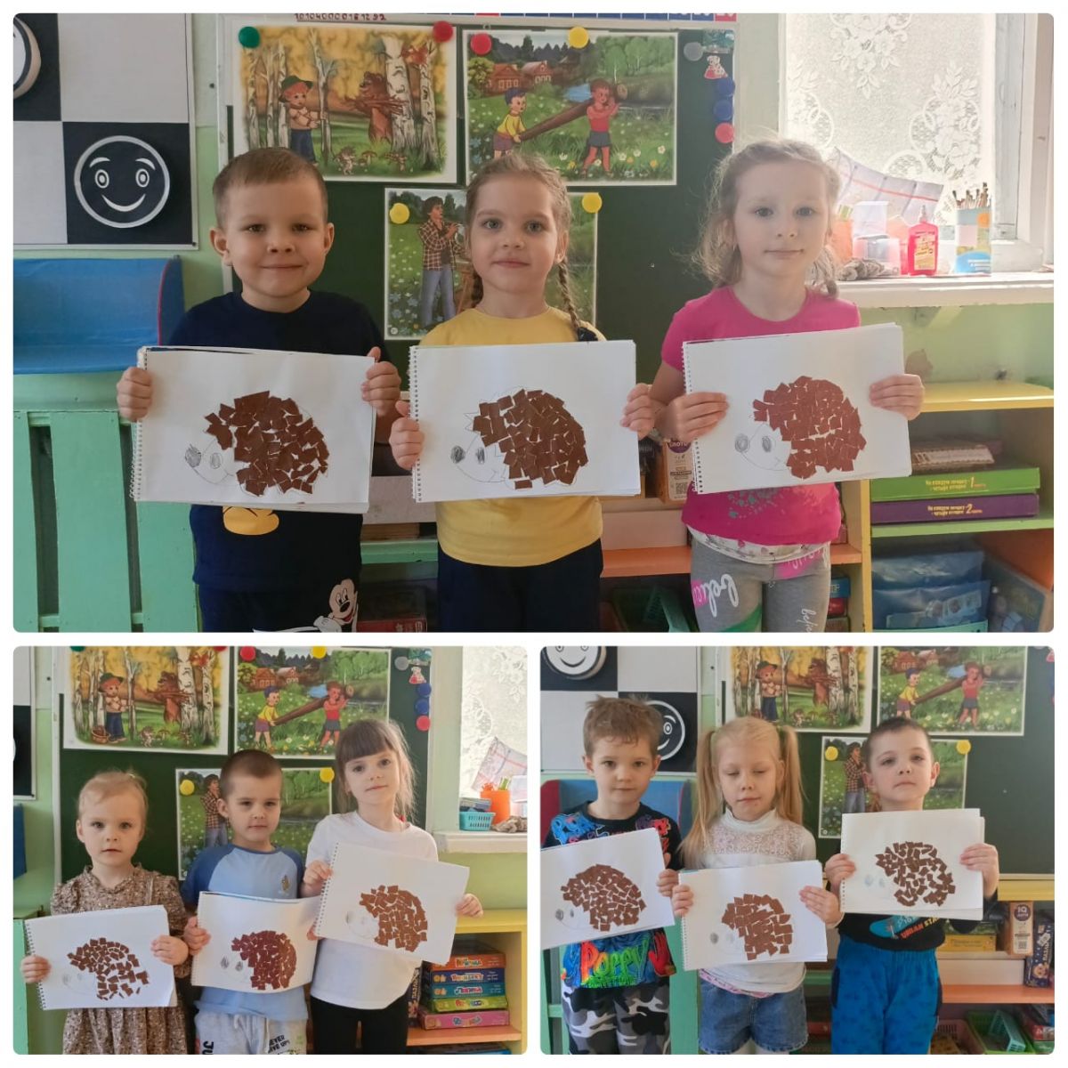 Дети рассматривают различные энциклопедии по теме недели. Педагоги беседуют с дошкольниками о растительном мире, о зверях и птицах, о насекомых. Сегодня ребята рассмотрели тематические картинки: деревья, птицы, домашние и экзотические животные. Рисовали мир природы, каким его видят дети, а также закрепили полученные знания, сделав, аппликацию "Ёжик" нетрадиционной техникой.