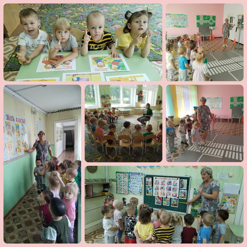 В группах педагоги провели беседы по темам: "Как вести себя в детском саду во время прогулок", "Лето весело встречай и ПДД выполняй", "Съедобные и не съедобные грибы", "Ешь только полезные ягоды". Рассматривали картинки: "В мире опасных предметов", отгадывали загадки, рисовали на тему дня.