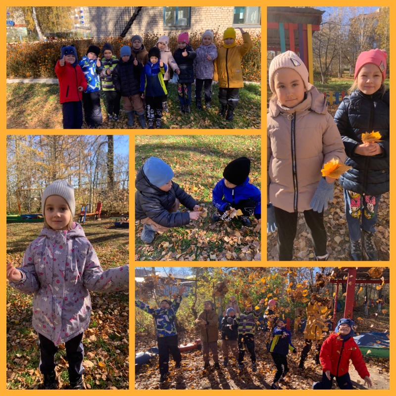 На прогулке наблюдали за тем, как опадают листья с деревьев и провели ещё один эксперимент «Как листья падают»; выкладывали из листьев рисунки, узоры, собирали осенние букеты.