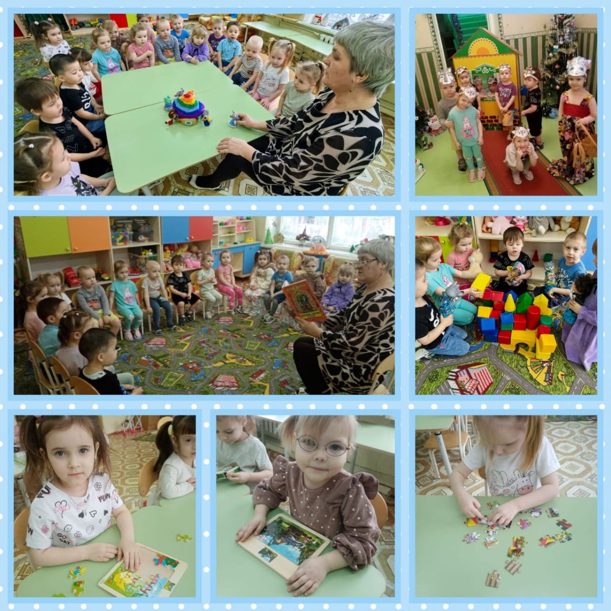 13.01.2025 г. С 9 по 17 января в рамках тематической недели "В гостях у сказки" во 2-й младшей группе "Радуга" воспитатели (Бажитова Е. Н., Мосолова Е. П.) с детьми читали сказки, рассматривали иллюстрации, показывали пальчиковый театр "Теремок", составляли сказки из пазлов. А дети инсценировали сказку "Волк и семеро козлят".