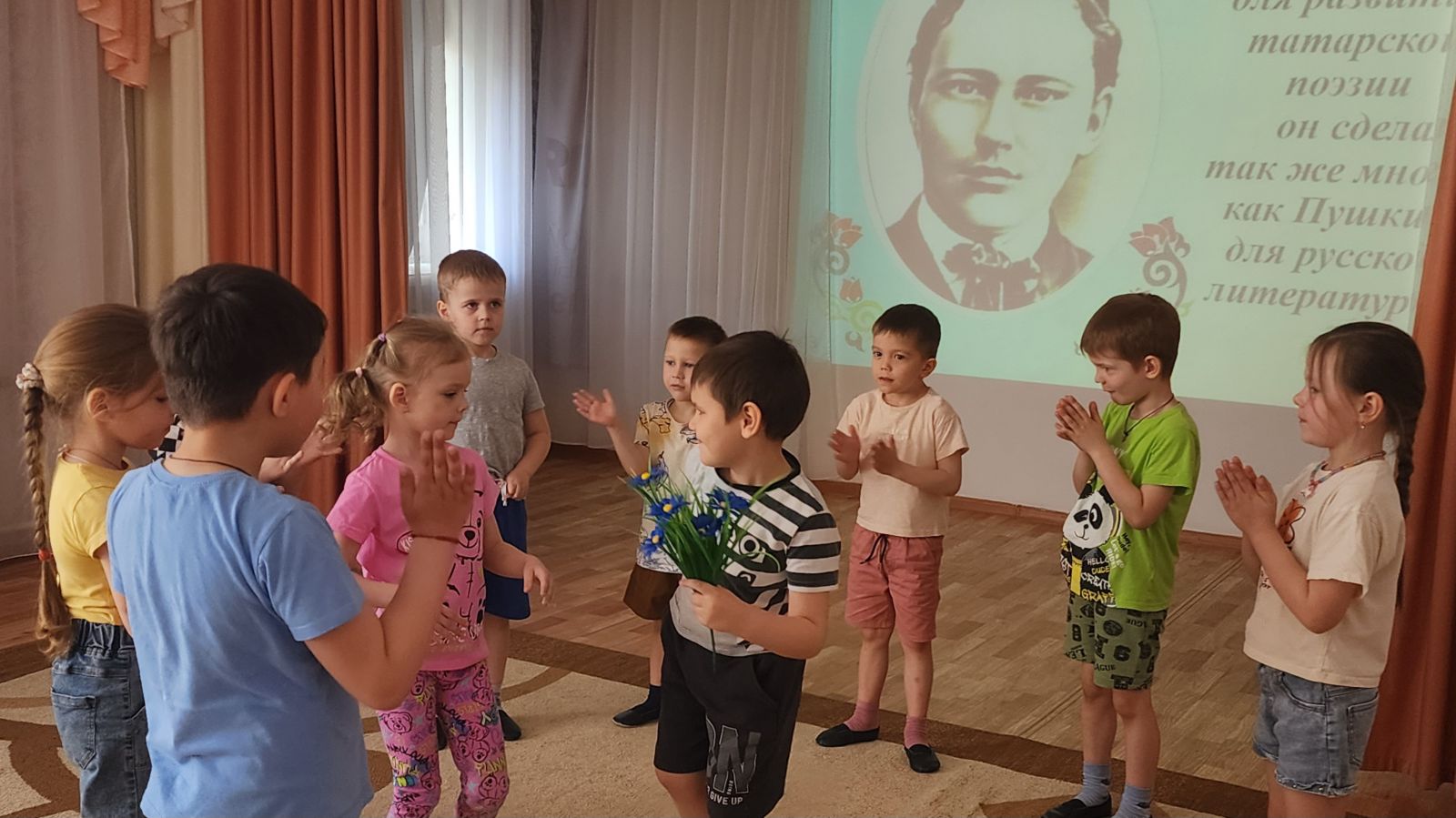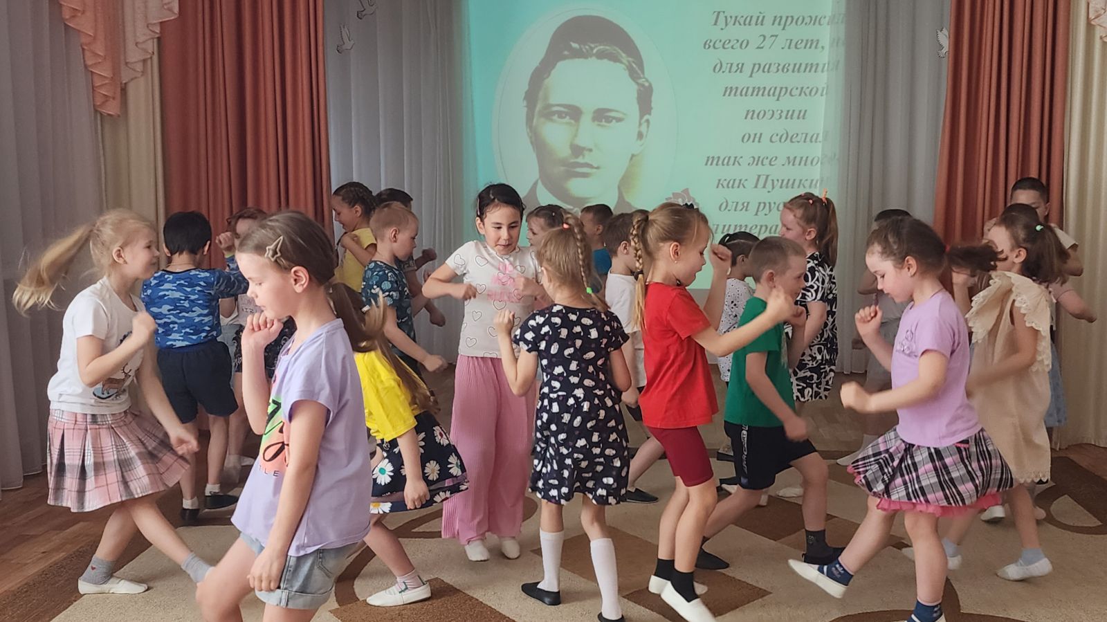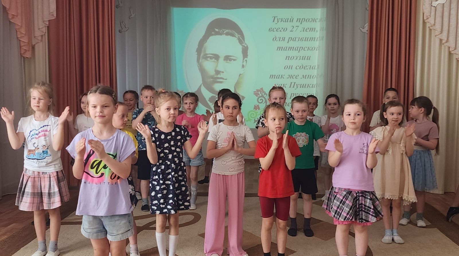 В нашем детском саду «Светлячок» прошёл музыкально-литературный вечер «Наш любимый Тукай», посвящённый 139-летию со дня рождения великого татарского писателя и поэта Габдуллы Тукая.