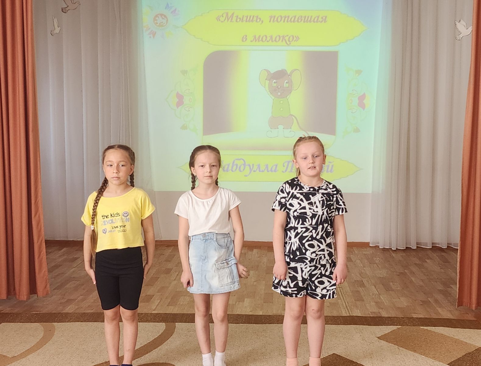 Воспитанники с большим актерским мастерством рассказывали стихотворения «Ленивый пёс», «Ребёнок и мотылёк», «Забавный ученик», «Мышь, попавшая в молоко», «Родной язык». Звучали стихи не только на русском, но и на татарском языках.