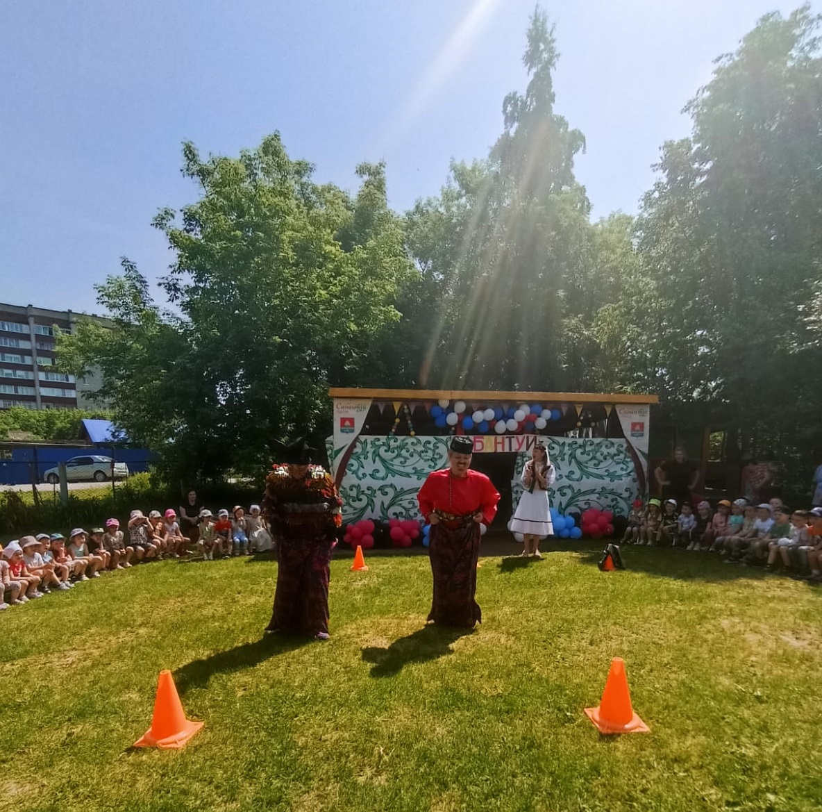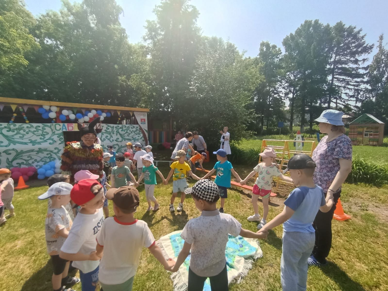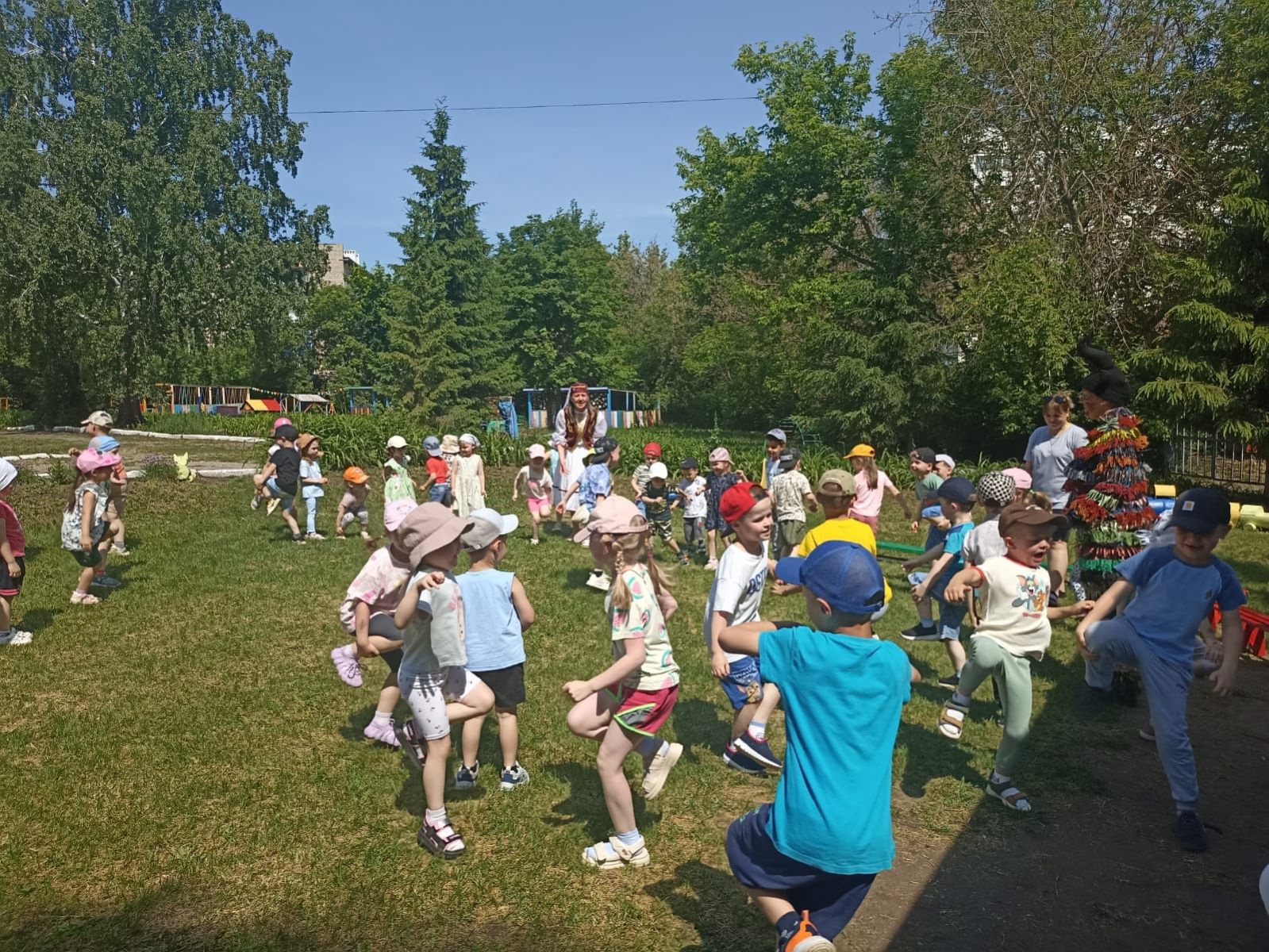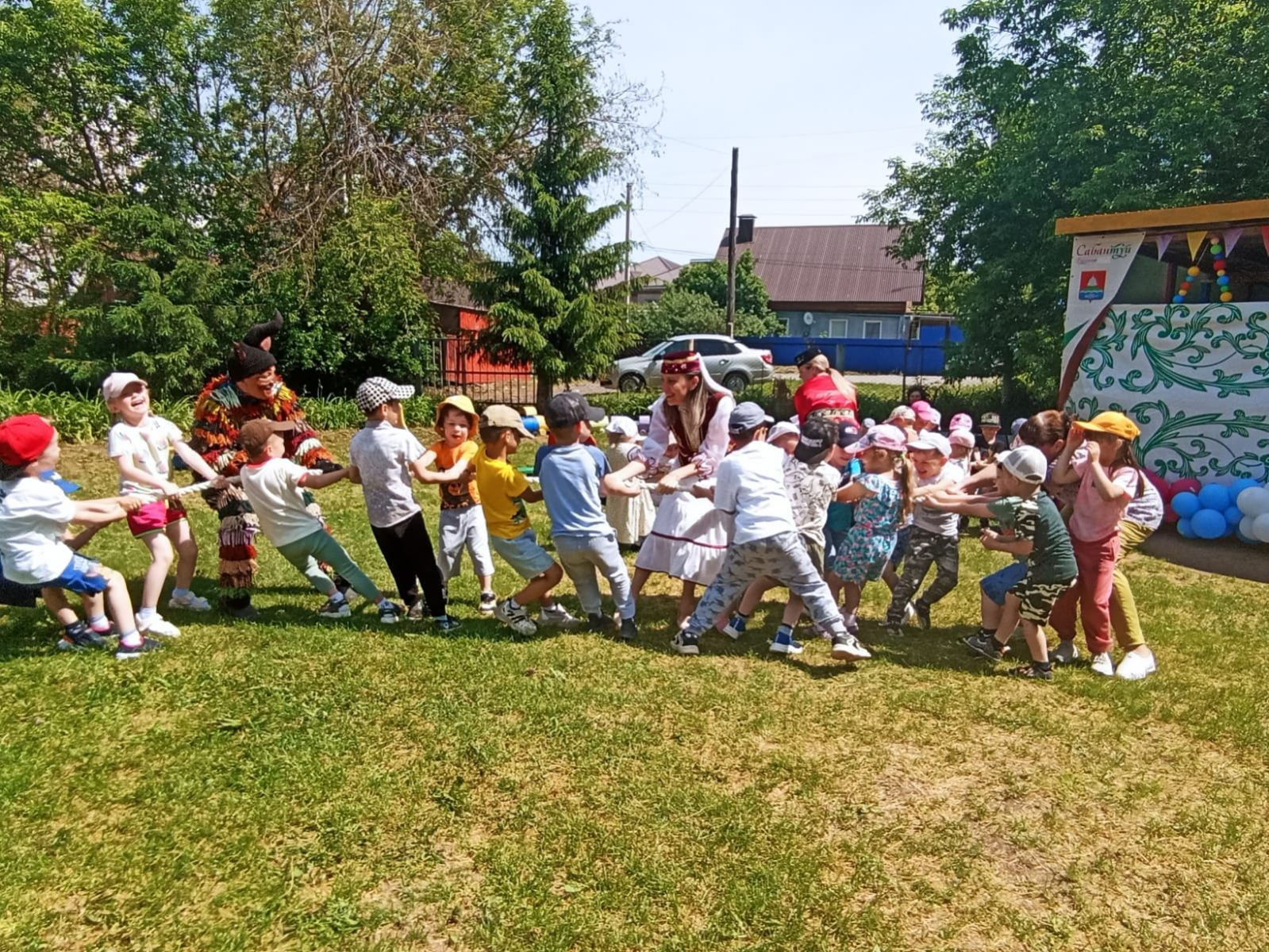 Были подготовлены такие развлечения, как «Перетягивание каната», «Конные скачки», «Бег с ложками» и т.д. Дети активно принимали участие в народных играх и национальных состязаниях.