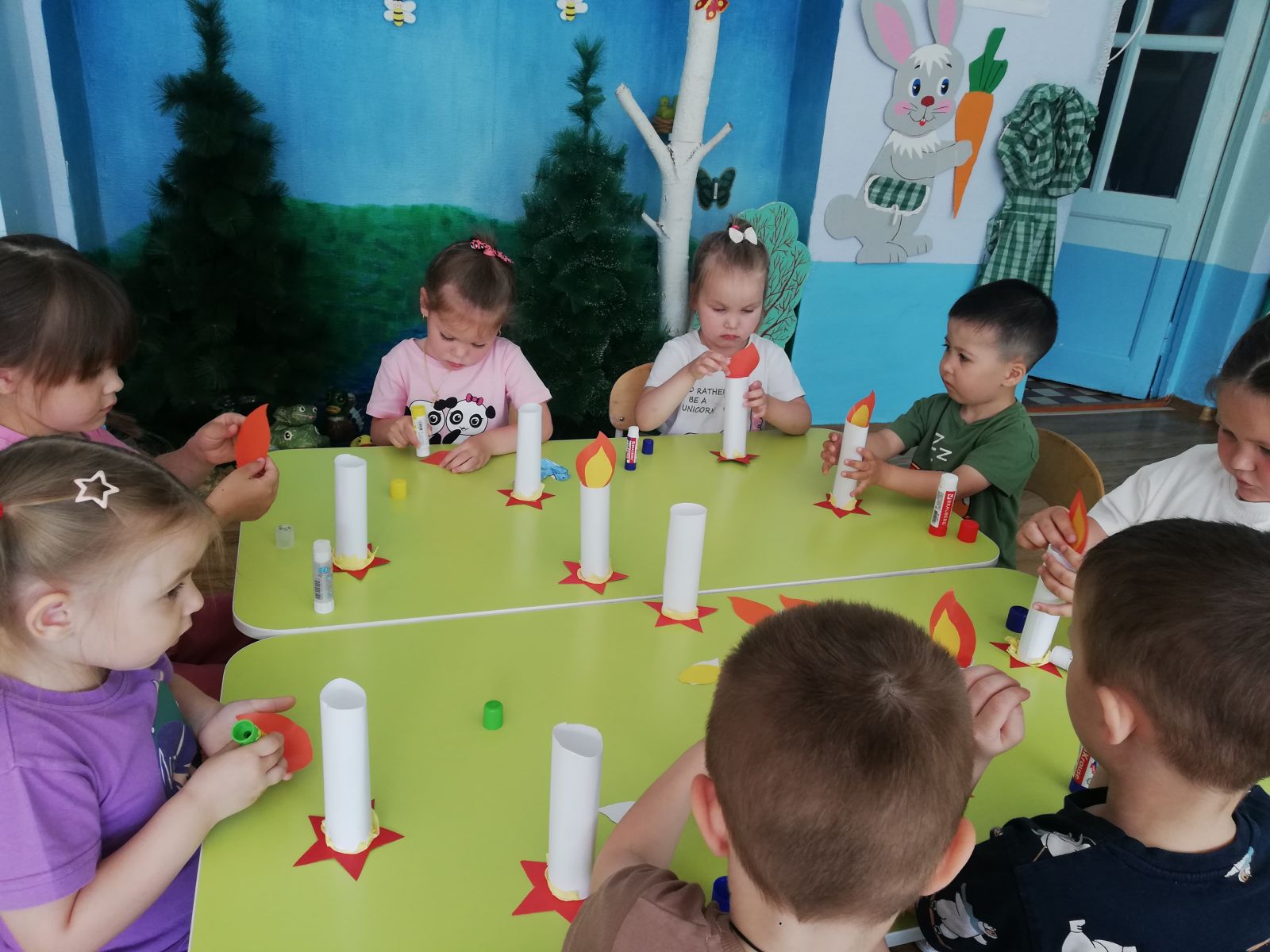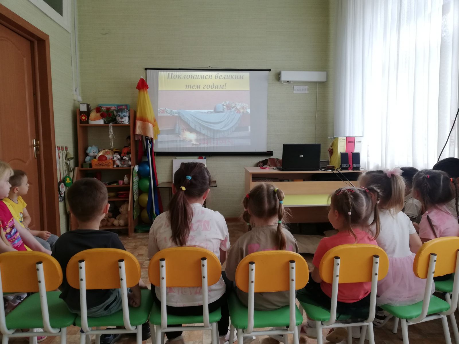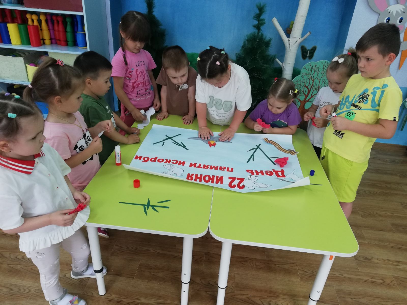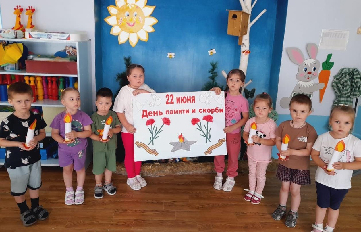 В преддверии 22 июня – Дня памяти и скорби, одной из самых трагических дат в истории страны, воспитатели группы "Ляйсан" (Ганеева З.Г., Фаттахова Л.С.) провели беседу с ребятами о том, как храбро сражались на фронте наши отважные защитники, прадеды наших воспитанников, прочитали стихи о победе, ветеранах, рассматривали репродукции, изображавшие начало Великой Отечественной войны. Посетили уголок патриотического воспитания, где воспитатель рассказала детям о Великой Отечественной войне, героях того времени и важности сохранения памяти о подвигах предков.