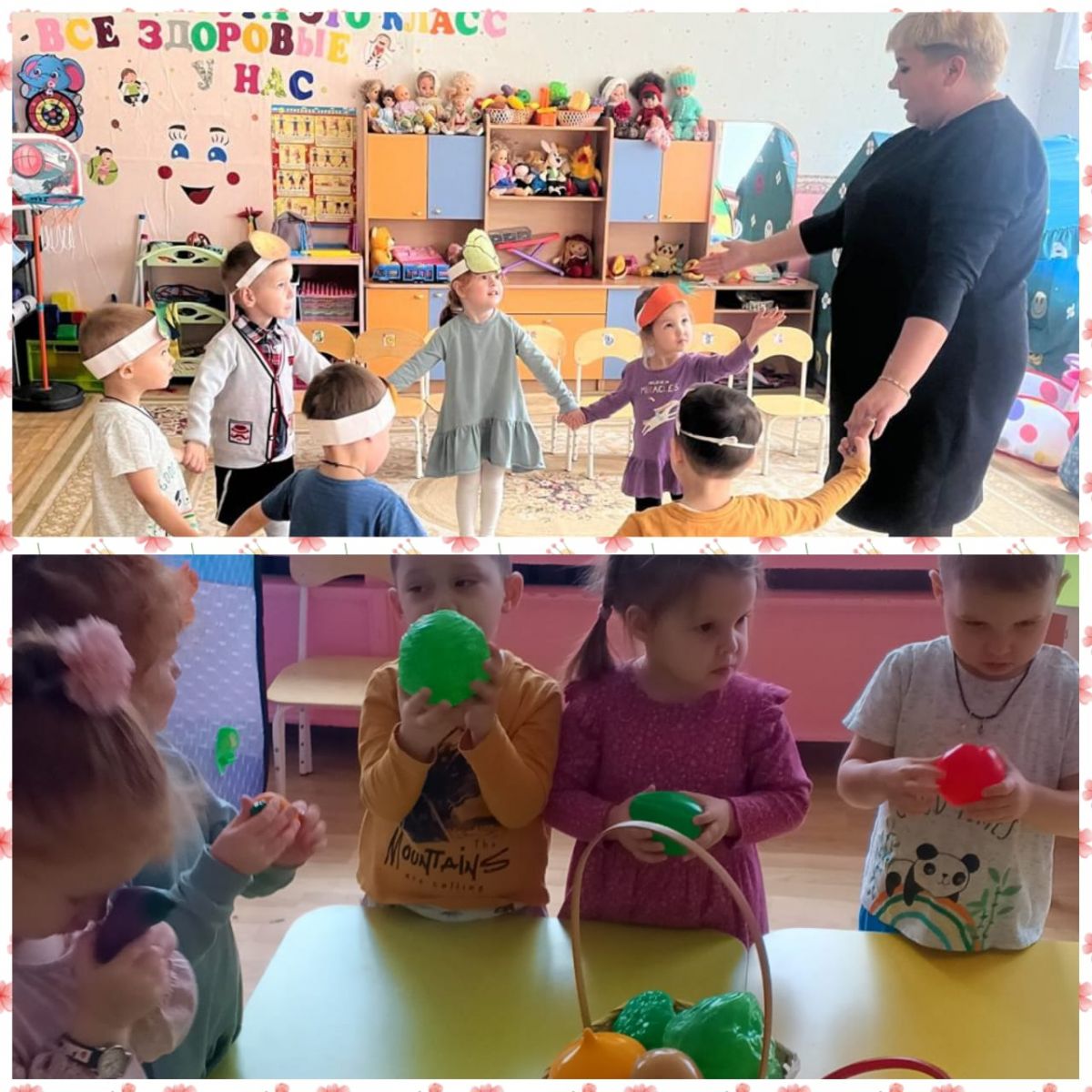 22.10.2025 г. В первой младшей группе «Капельки» (воспитатели Савина О.А. и Моргачева Н.) прошла интересная познавательная тематической неделя «Осень Урожайная». В  течение недели дети знакомились с осенними изменениями в природе. Узнали что осень — это пара сбора урожая. Малыши с интересом рассматривали муляжи овощей и фруктов, учились называть их, различать и группировать. Рассматривали картины овощей и фруктов, играли в дидактические игры: «Разложи овощи и фрукты по корзиночкам», «Что растёт в огороде», «Найди пару», «Чудесный мешочек». Смотрели сказку «Репка». Лепили зайчику морковку и делали аппликацию любимых фруктов и овощей.  Осень — удивительная пора!