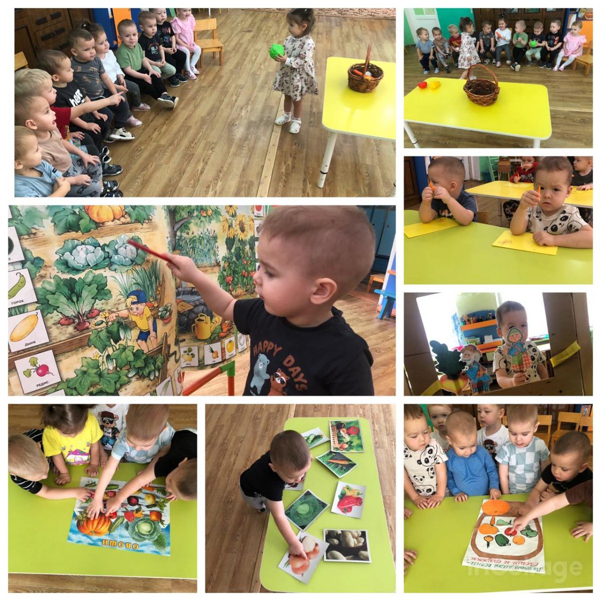 Воспитатели познакомили детей с овощами, обращая внимание на форму, цвет, внешний вид. Учили внимательно слушать и понимать стихи об овощах. С большим интересом малыши рассматривали картинки.