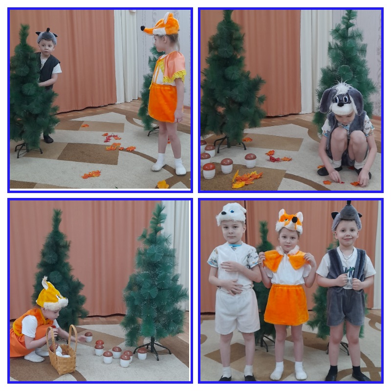 В театрализованной игре «Как лесные звери к зиме готовятся» дети примерили разные образы зверей и ещё раз уточнили представления о подготовке некоторых диких животных к зиме (зайцы, белки, лисы, волки меняют цвет шубки; ёж, медведь впадают в спячку).