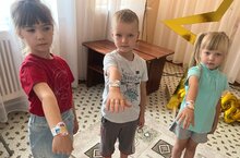 Дети средней группы утром исполнил гимн и изготовили браслеты. -