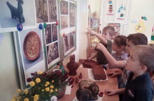 Сегодня воспитанники подготовительной к школе группы совершили экскурсию в групповой музей глины.