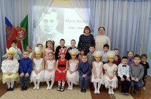 К 120 - летию со дня рождения татарского поэта Мусы Джалиля, воспитатель по обучению детей татарскому языку Нигматзянова Г.С., провела тематическое мероприятие, где рассказала детям о жизни и творчества поэта. Дети прочитали стихи " Храбрый заяц", "Петушок", "Мой пес", "Кукушка", " Вороватый котенок". Рассказали пословицы о любви к Родине и героизме. Девочки подготовительной логопедической группы исполнили поэтическо - хореагрофическую композицию "Красная ромашка", в заключении мероприятия дети посмотрели одноименный видеоролик. С помощью таких мероприятий в детском саду воспитывается чувство патриотизма, уважение и интерес к творчеству татарских писателей и поэтов.