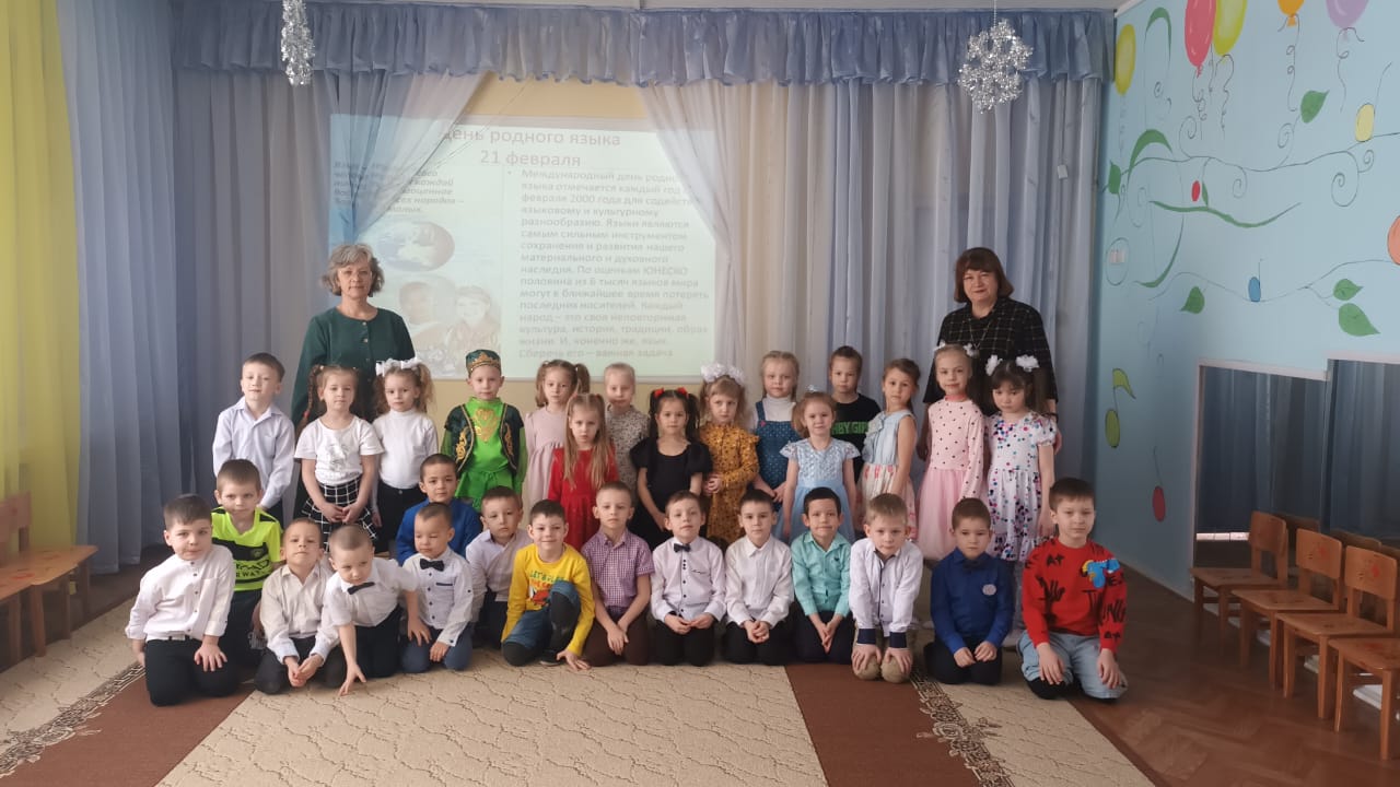 " День родного языка ". На протяжении всего мероприятия дети и педагоги показывали знания татарской и русской литературы, читали стихи пели песни, инсценировали произведения татарских писателей. Дети с чувством гордости рассказывали о своём народе, о своём родном языке. Педагоги направляли детей к пониманию толерантности по отношению к представителям других национальностей, к другой культуре, поэзии, музыки.