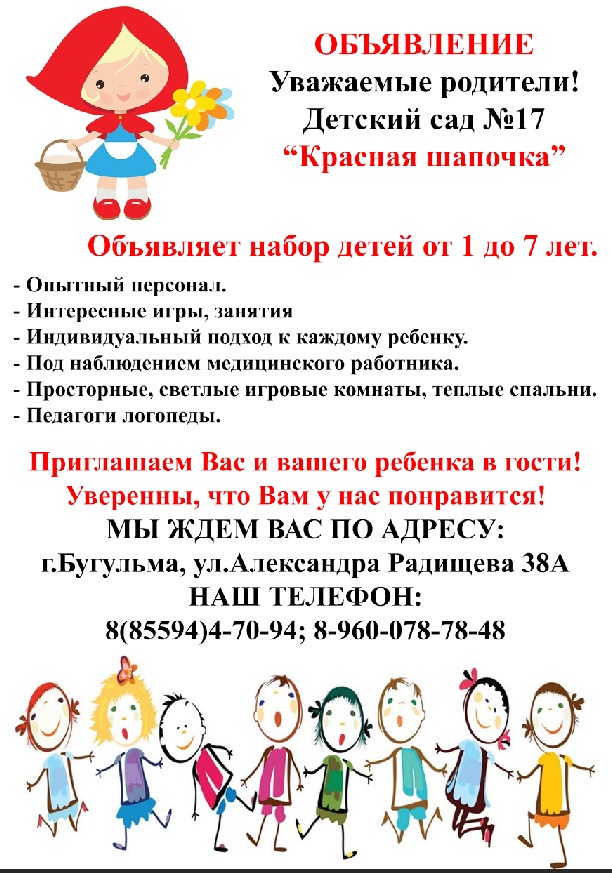 Муниципальное бюджетное дошкольное образовательное учреждение детский сад комбинированного вида № 17 «Красная шапочка» Бугульминского муниципального района Республики Татарстан/ Татарстан Республикасы Бөгелмә муниципаль районы мәктәпкәчә тәрбия hәм белем бирү муниципаль бюджет учреждениесе “Красная шапочка ” 17 нче катнаш төрендәге балалар бакчасы - новости