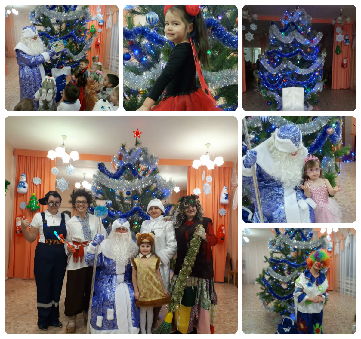 Дети средней, старшей и подготовительной групп разучивали сложные песни и стихи. На праздник к детям приходили Клоун Весельчак, Баба-Яга, Домовёнок Кузя, Снегурочка, Дед Мороз и Курьер из Новогодней доставки праздничных телеграмм.