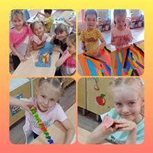 Многие помнят, как в детстве делали замечательную игрушку. Вы сейчас ее увидите. Когда мы с детьми нашей группы стали придумывать ей название, то были разные предложения: «Гармошка», «Пружинка», «Разноцветная змейка», «Веселая змейка». Но когда мы выложили детские работы в виде змейки и приставили головку, в которой вы узнаете «игрушку-шутку», то почти единодушно решили, что это «Веселая змейка». -