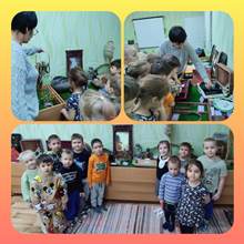 Воспитанники подготовительной речевой группы №4 (9) посетили сегодня Музей патриотического воспитания. Наши воспитанники посредством мини-музея в детском саду познают старинный быт, знакомятся с интерьером русской избы, с традициями татарского народа, с народными куклами, национальными костюмами и предметами быта. -