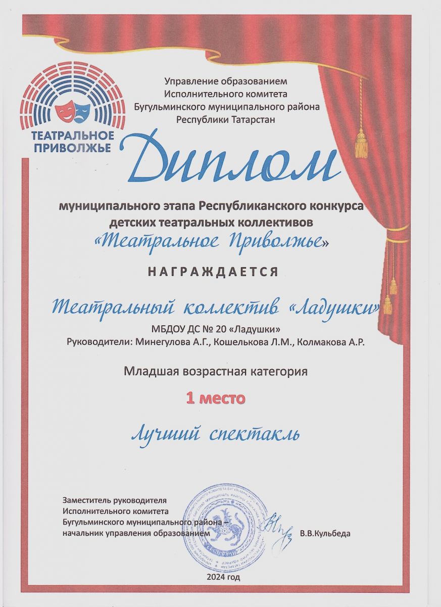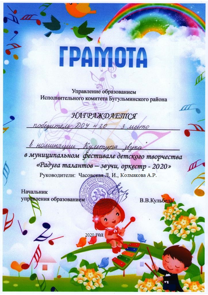Муниципальное бюджетное дошкольное образовательное учреждение детский сад комбинированного вида №20 «Ладушки» Бугульминского муниципального района Республики Татарстан/ Татарстан Республикасы Бөгелмә муниципаль берәмлеге мәктәпкәчә белем бирү муниципаль бюджет учреждениесенең катнаш төрдәге 20-нче "Ладушки" балалар бакчасы