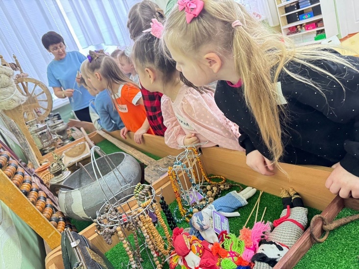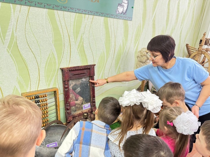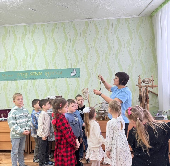 Опубликовано: 22.01.2025Бөгелмә шәһәренең 18нче «Кыңгырау» балалар бакчасы мәктәпкә әзерлек һәм зурлар төркеме тәрбияләнүчеләре тәрбиячеләр: Екатерина Павловна, Маргарита Вениаминовна җитәкчелегендә 20нче номерлы «Ладушки» балалар бакчасының «Туган ягым тарихы» музеенда кунакта булдылар. Очрашу вакытында «Нәрсә ул – музей?» дигән темага әңгәмә үткәрелде, «Рус-татар көнкүреше музее» видеофильмы тәгъдим ителде. Балалар музей экспонатлары турында белемнәре белән уртаклаштылар. Экспонатлар белән якыннан таныштылар. Кайбер экспонатларны күргәч, балалар гаҗәпләнүләрен, соклануларын яшереп кала алмады, беренче тапкыр күрүләре турында сөйләделәр. Бу очрашу балалар күңелендә якты эз калдырыр дип ышанып калабыз. Музейда алган хис-тойгылар аларның күңелләрендә мәңге сакланыр!