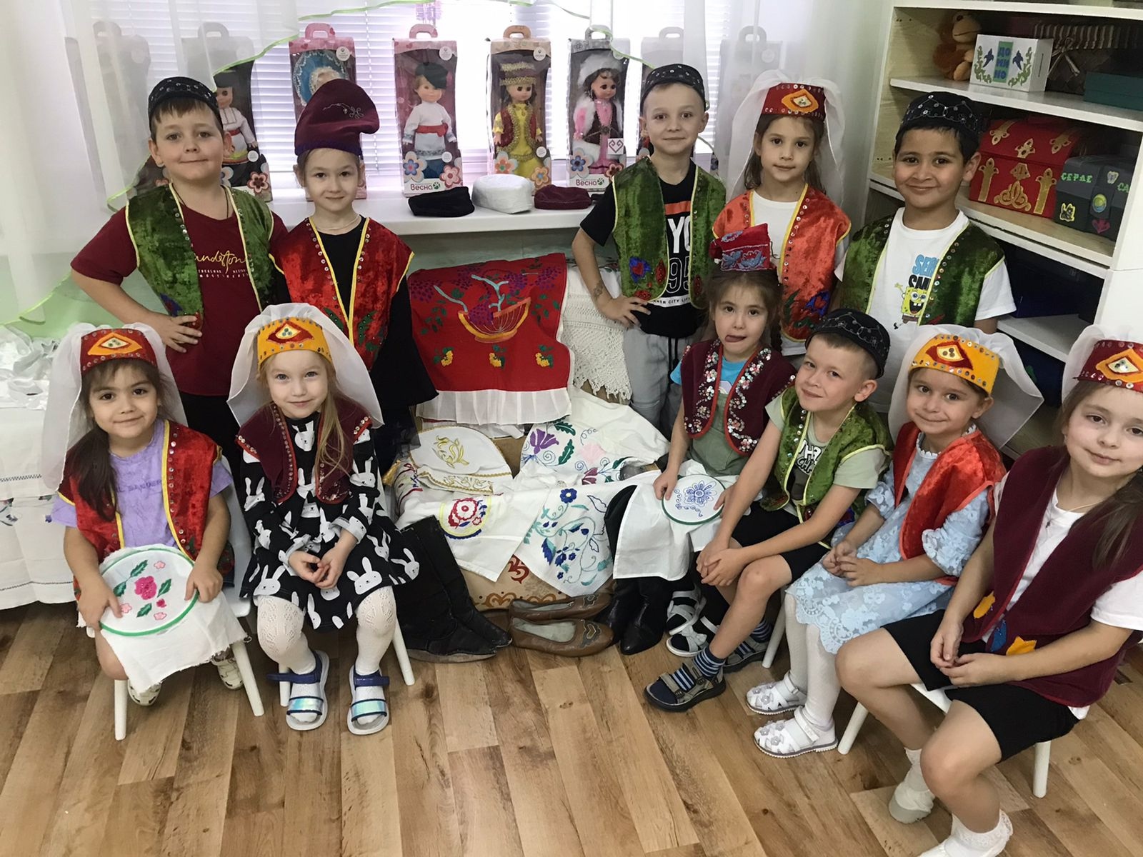 Главным «героем», конечно же, был бабушкин сундучок, внутри которого лежали старинные татарские головные уборы, вышитые полотенца и скатерти. Доставая из сундучка старинные предметы, воспитатель рассказывала о традициях и обрядах татарского народа, национальном фольклоре. Дети с удовольствием играли в татарские народные игры.