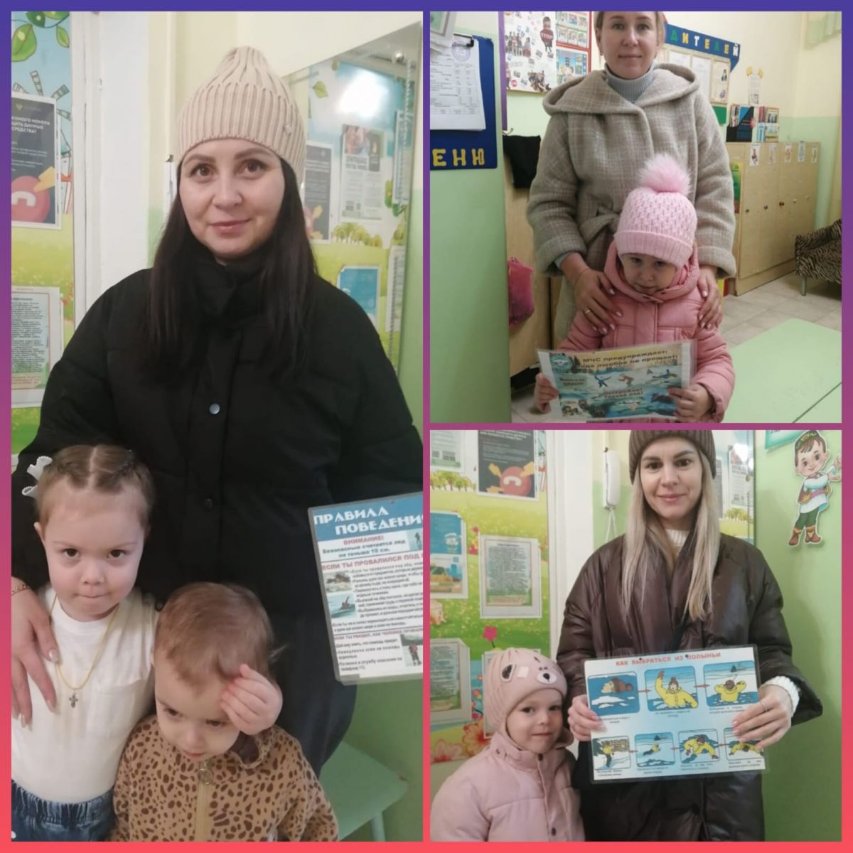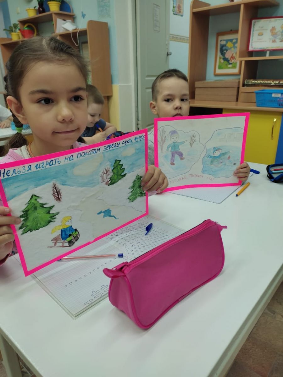 Были проведены занятия по теме «Осторожно, тонкий лёд!». Основу мероприятий составили игровые проблемные ситуации, решение которых сформировали у ребят алгоритм правильных действий. Были проведены беседы,в которых рассказывалось о том, что несоблюдение правил безопасности на водных объектах в зимний период часто становится причиной гибели и травматизма людей.