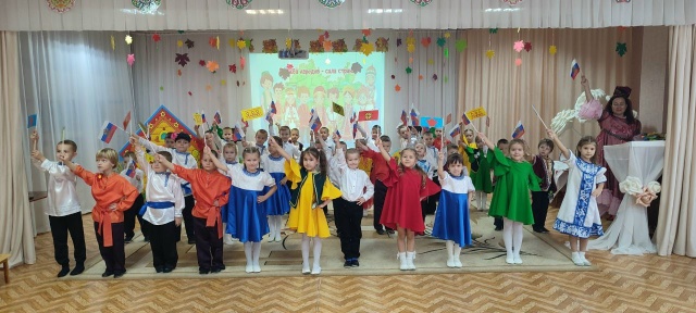 Опубликовано: 07.11.2025В детском саду прошло мероприятие, посвящённое Дню народного единства. Дети играли в игры разных национальностей, такие как белорусская игра «Пугало», русская народная игра «Золотые ворота», игра коренных народов севера «Бой медвежат».