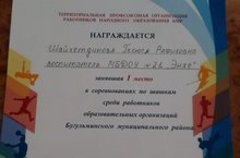 31 марта 2018 г прошли соревнования по многоборью(шашки,шахматы,настольный теннис) среди работников образовательных организаций Бугульминского муниципального района.Наш воспитатель Шайхетдинова Гелюся Рафиковна заняла 1 место в соревнованиях по шашкам.