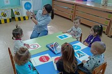В рамках проведения профилактических мероприятий, посвящённых вопросам обеспечения безопасности детей на дорогах, в 1 младшей группе "Кояшкай" было проведено тематическое занятие на тему: "Дорожные знаки", основной целью которого являлось формирование навыков безопасного поведения на дорогах, адаптации детей к транспортной среде.