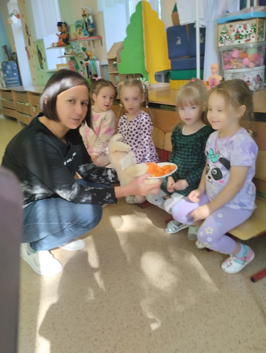 Закрепляли знания детей о сезонных изменениях в природе, о осеннем сборе урожая, об овощах. Ребята учились различать овощи  по внешнему виду, вкусу, форме; развивали внимание, диалогическую речь, сенсорные навыки. Побуждали детей отвечать на вопросы. Воспитывали позитивное отношение к природе.