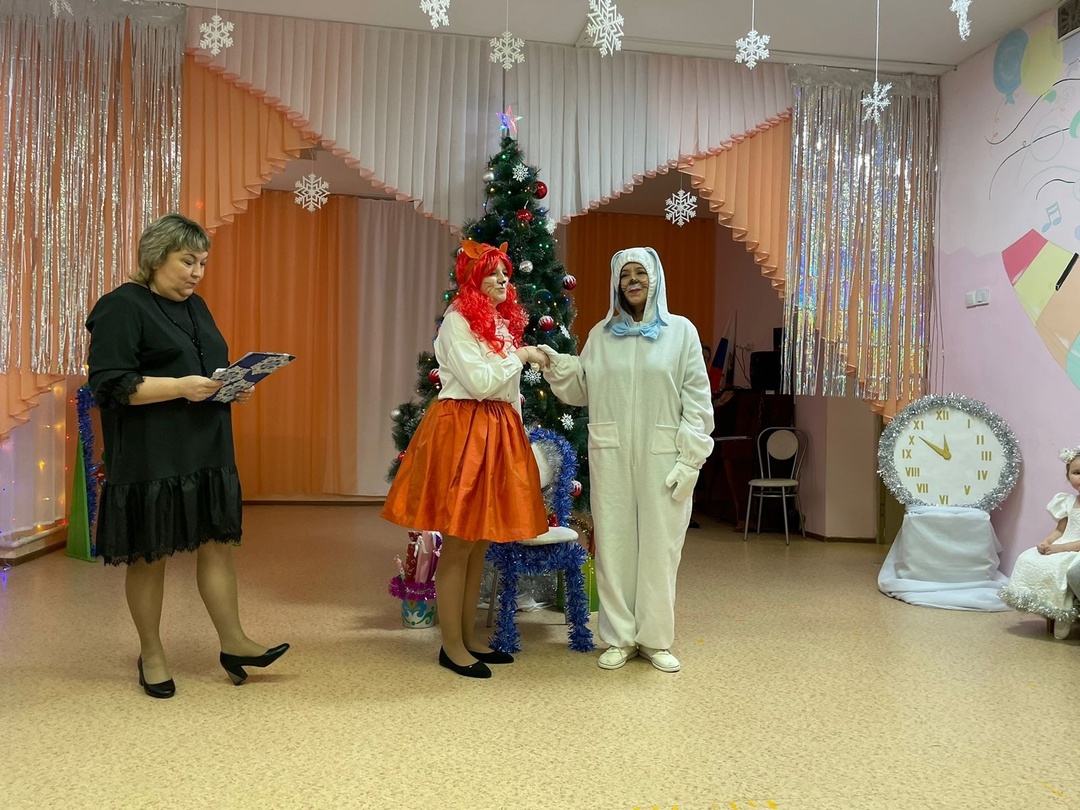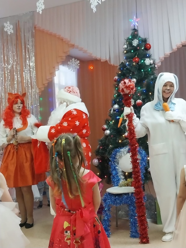 Сегодня в средней группе "Гномики" прошёл детский новогодний утренник. К нам в гости на Ёлку пришли Заяц и Лиса.