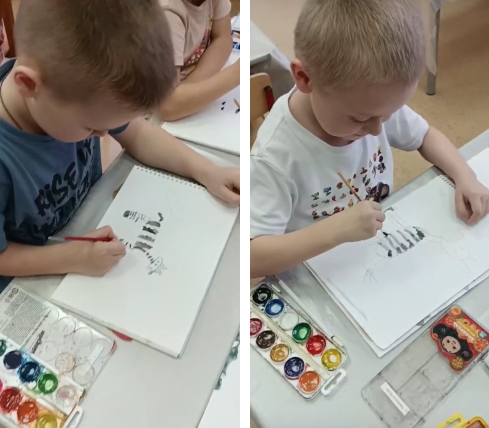 После обсуждения мы приступили к творческому процессу: каждый ребёнок смог создать свою собственную зебру. В конце занятия устроили выставку работ, где каждый мог представить своё творение. (Смотреть видео!)