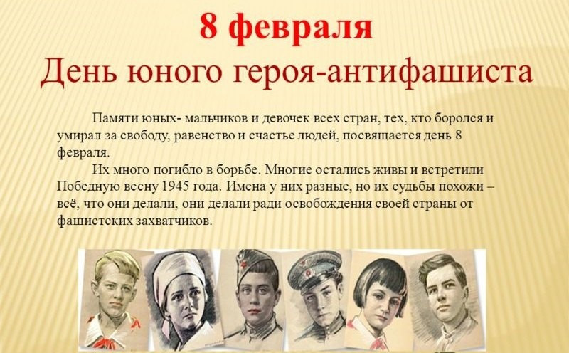 8 февраля наша страна отмечает День памяти юного героя-антифашиста. Подвиги юных героев — это пример невероятного мужества и любви к Родине.