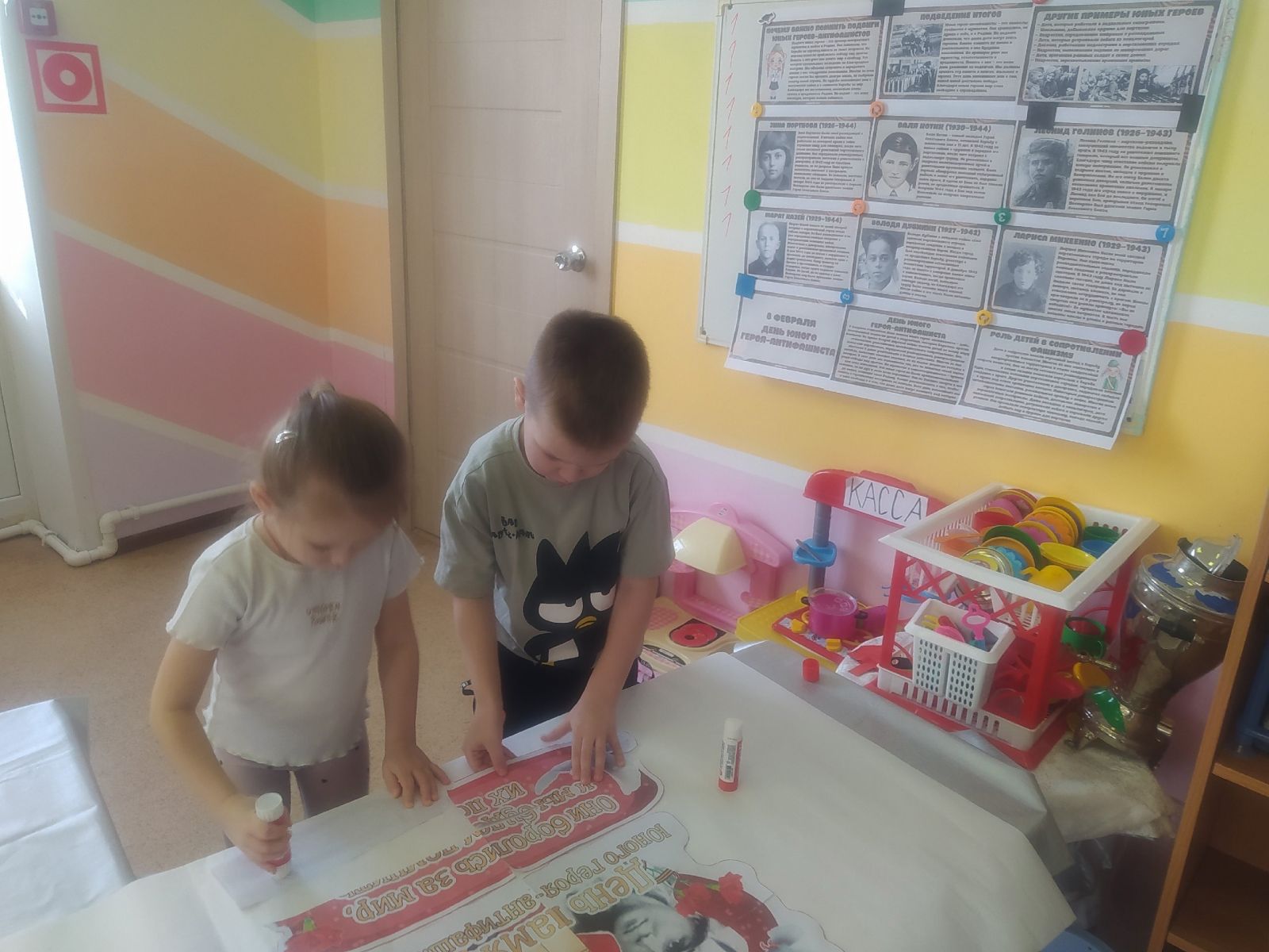 В старшей группе "Звёздочки" сегодня вспомнили тех, кто не пожалел своей жизни ради победы над врагом: говорили об их подвигах, ведь это наше наследие, которое нельзя забывать. Так же сделали "Плакат памяти", как напоминание нам о цене свободы и том, что даже дети могут изменить ход истории.