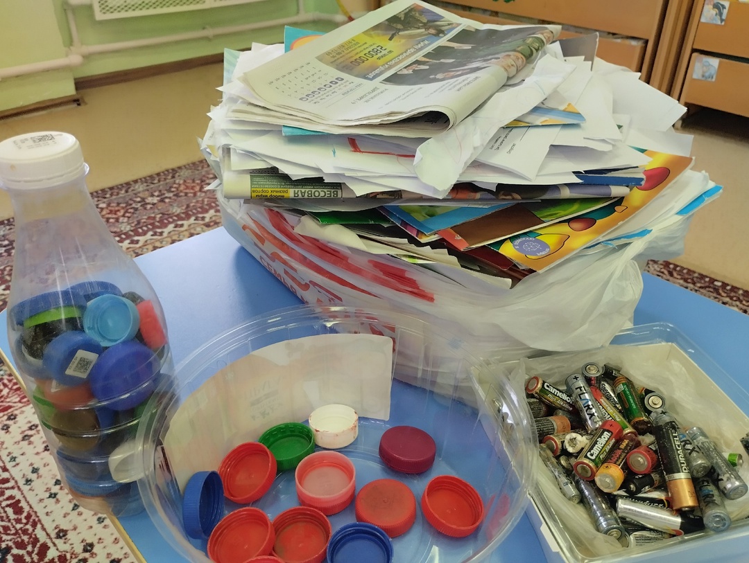 Воспитанники группы "Гномики" участвуют в экологических акциях "Добрые крышечки", "Батарейки, сдавайтесь!" и "Сдай макулатуру — спаси дерево!"