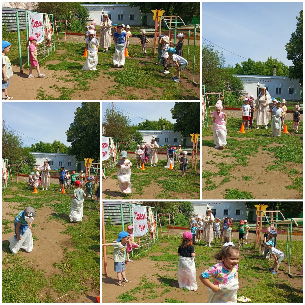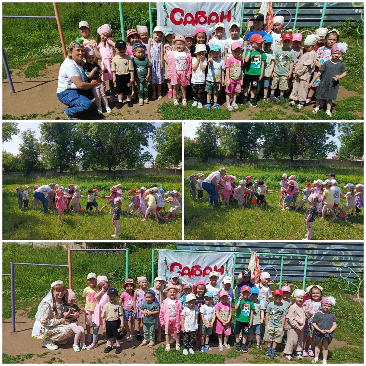Праздник начался с приветствия и знакомства с традициями Сабантуя. Дети не только узнали много нового о татарской культуре, но и активно участвовали в конкурсах и играх, таких как перетягивание каната, бег в мешках, перенос яйца в ложке и скачки на лошадях.