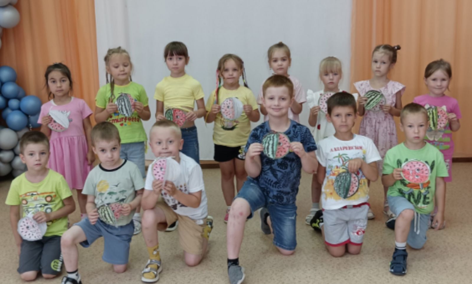 АРБУЗА». Этот день был посвящён вкусному и полезному символу лета – сладкому арбузу. У дошколят вызвало удивление, что арбуз — это большая и сладкая ягода. Ребята много говорили о замечательном и вкусном арбузе. Узнали, что он относится к семейству тыквенных. Родина арбуза — Южная Африка. Арбузы любят солнце, тёплый воздух и влажную почву. Также дети узнали, что из арбузов делают варенье, цукаты, из арбузной корочки можно сделать вазу для фруктов, арбузы можно даже солить! В честь этого праздника ребята сделали своими руками арбузики с сочными дольками, получив много положительных эмоций!