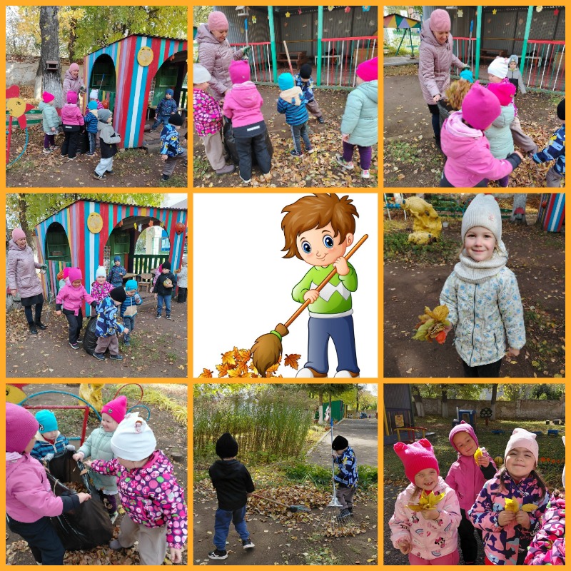 В один из таких прекрасных осенних дней воспитатели вместе с детьми средней группы "Гномики" решили устроить уборку на своём участке. В процессе трудовой деятельности дети учились доводить начатое дело до конца, у них формировалось представление о значимости труда для себя и окружающих, они были очень довольны от результатов выполненной работы.