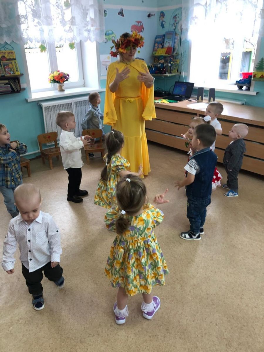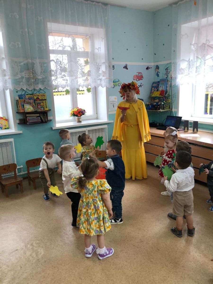 Малыши с интересом исполняли песни, танцевали с осенними листьями и играли с ними.
