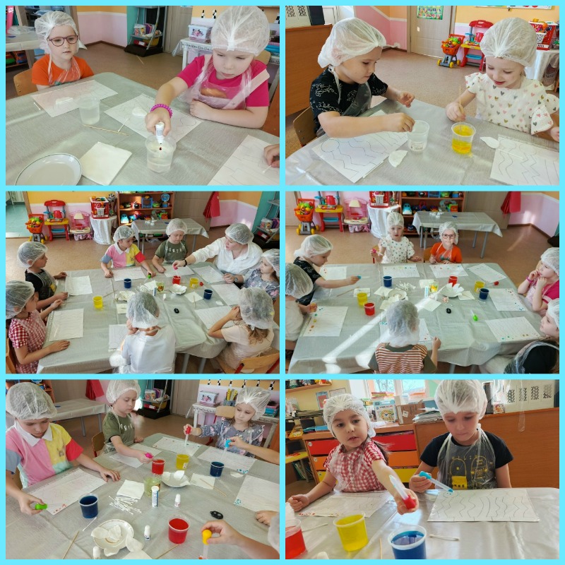 Сегодня в старшей группе "Звёздочки" провели опыт с масляной поверхностью и каплями воды.