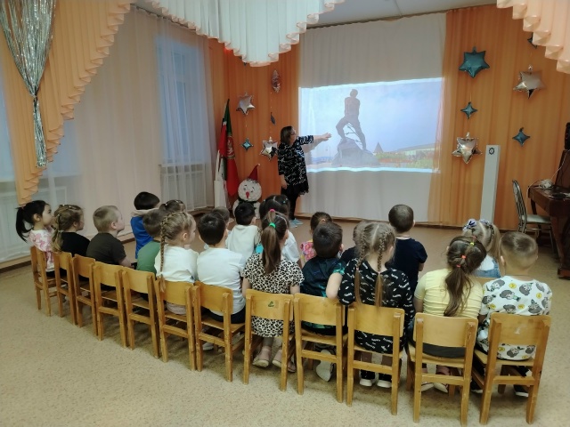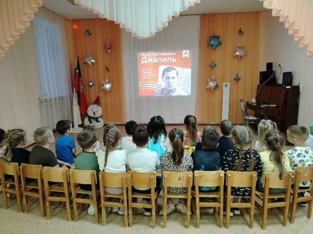 Опубликовано: 02.02.2026Сегодня в нашем саду прошло особенное занятие, посвящённое 120-летию со дня рождения великого поэта-героя — Мусы Джалиля. Воспитанники познакомились с удивительной и героической судьбой поэта. Дети узнали, что поэт писал не только о борьбе, но и о красоте жизни, о доброте и любви к родной земле. Несмотря на юный возраст, ребята средней и старшей группы очень внимательно слушали историю о том, как важно быть смелым и верным своей мечте, о жизни и подвиге этого удивительного человека.