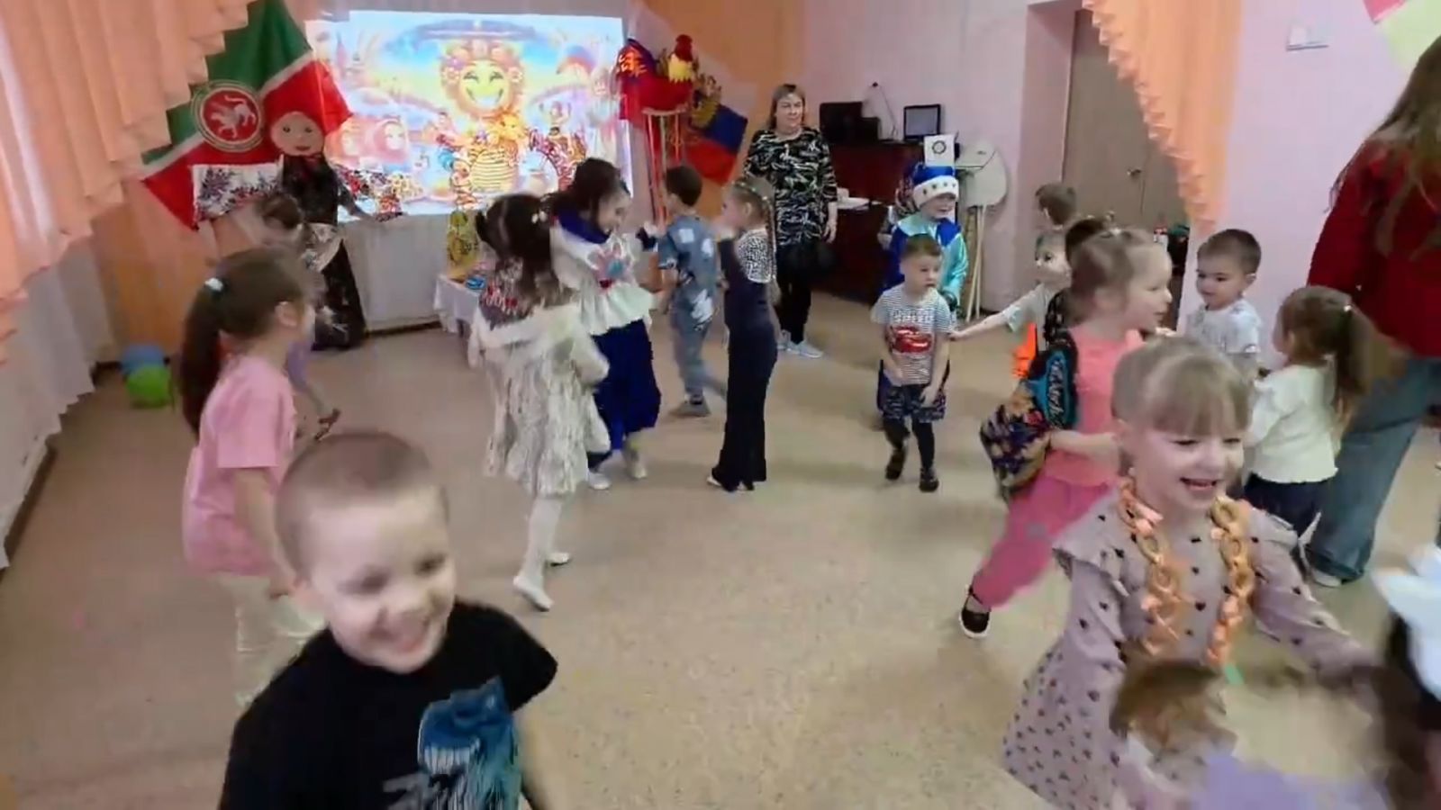В нашем детском саду празднование широкой Масленицы прошло весело и задорно! Дети активно водили хороводы, играли в народные игры, соревновались в забавных эстафетах, играли на музыкальных инструментах в оркестре, отгадывали загадки. Атмосфера была наполнена радостью, смехом и весельем, оставив у детей яркие впечатления и тёплые воспоминания.