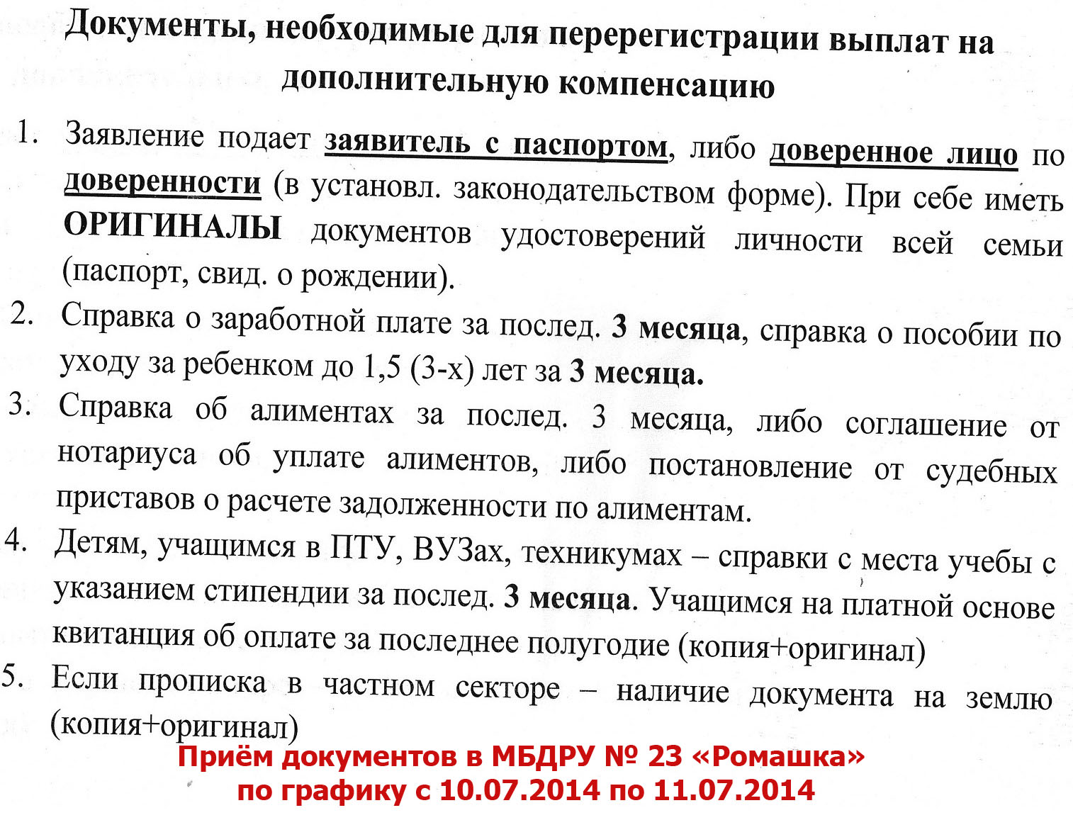 Документы для перерегистрации выплат на дополнительную компенсацию