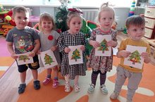 Воспитанники старшей группы с огромным удовольствием приняли участие в создании новогодней гирлянды, которая украсила группу в нашем саду.