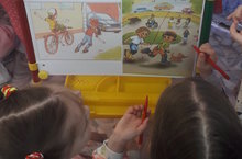 С целью развития навыков безопасного поведения во дворе и организации профилактической работы по безопасности дорожного движения в детском саду прошла познавательная игра "А у нас во дворе"для детей 6- 7 лет.