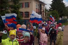 В честь празднования Дня России музыкальный руководитель Кабанова Наталья Сергеевна организовала детский танцевальный флешмоб. Идейно-композиционной изюминкой стал Российский триколор. Выступление проходило под ритмичную песню Олега Газманова "Вперед Россия".