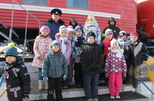 Дети подготовительных к школе групп посетили пожарный поезд станции Бугульма. Начальник пожарного поезда Потапов Александр Михайлович рассказал ребятам о профессии пожарных. Вниманию дошкольников было представлено оборудование: световая башня, пенная установка пурга. Специально был организован показ фрагмента учений по ликвидации огня. Дети с интересом рассматривали теплоотражающие костюмы, примеряли пожарные шлемы. Приятным сюрпризом стало подведение итогов конкурса творческих работ на противопожарную тематику и получение сладких призов. Возвращаясь в детский сад дети с восторгом обменивались впечатлениями.