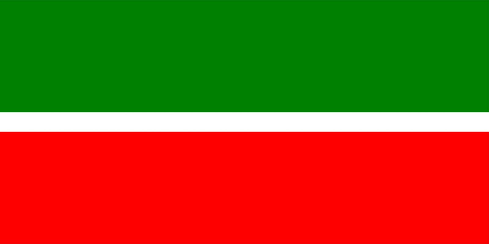 Государственный флаг Республики Татарстан пpедставляет собой пpямоугольное полотнище с гоpизонтальными полосами зеленого, белого и кpасного цветов. Белая полоса составляет 1/15 шиpины флага и pасположена между pавными по шиpине полосами зеленого и кpасного цветов. Зеленая полоса навеpху. Отношение ширины флага к его длине - 1:2.