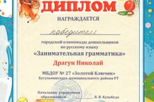 В детском саду № 9 «Колобок» прошла олимпиада для дошкольников по русскому языку «Занимательная грамматика». Наш детский сад представлял Драгун Николай. И он не подвел! В упорной борьбе среди самых эрудированных дошколят Николай стал победителем! Коля, ты — настоящий умница и гордость нашего сада! Ты доказал, что русский язык может быть не только серьезным, но и занимательным! Благодарим педагогов и родителей за подготовку и поддержку! Вместе мы растим будущих отличников!