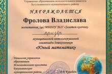 Сегодня в прогимназии № 14 "Журавушка" прошла олимпиада по математике для детей дошкольного возраста, собрав юных гениев со всего города. Наша воспитанница, юная звездочка математики, Фролова Влада, продемонстрировала выдающиеся способности и стала призером престижного состязания.